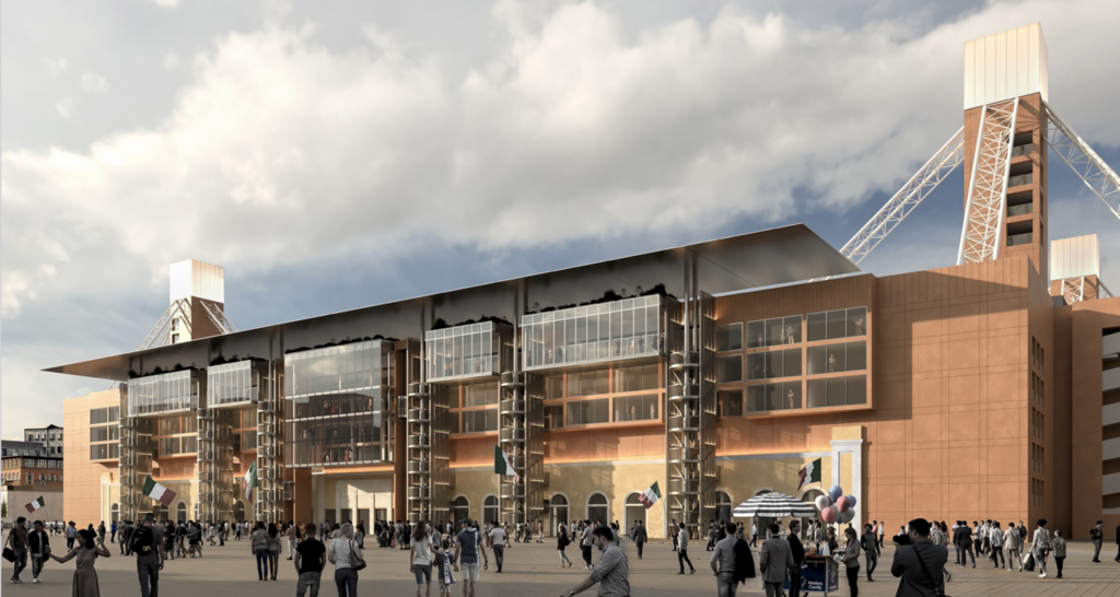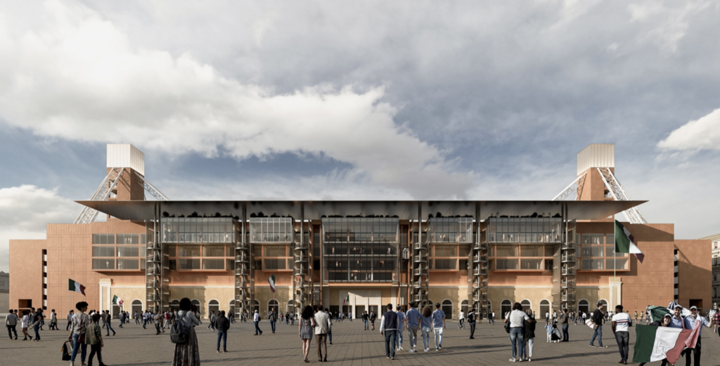 Nell’immaginare il progetto, l’architetto Penaranda ha voluto ribadire l’importanza di una maggiore integrazione tra lo stadio e il quartiere. Uno degli elementi messi in evidenza riguarda le cancellate, rimosse durante la settimana per creare una piazza pubblica proprio nella funzione di riconnettere il tessuto urbano.