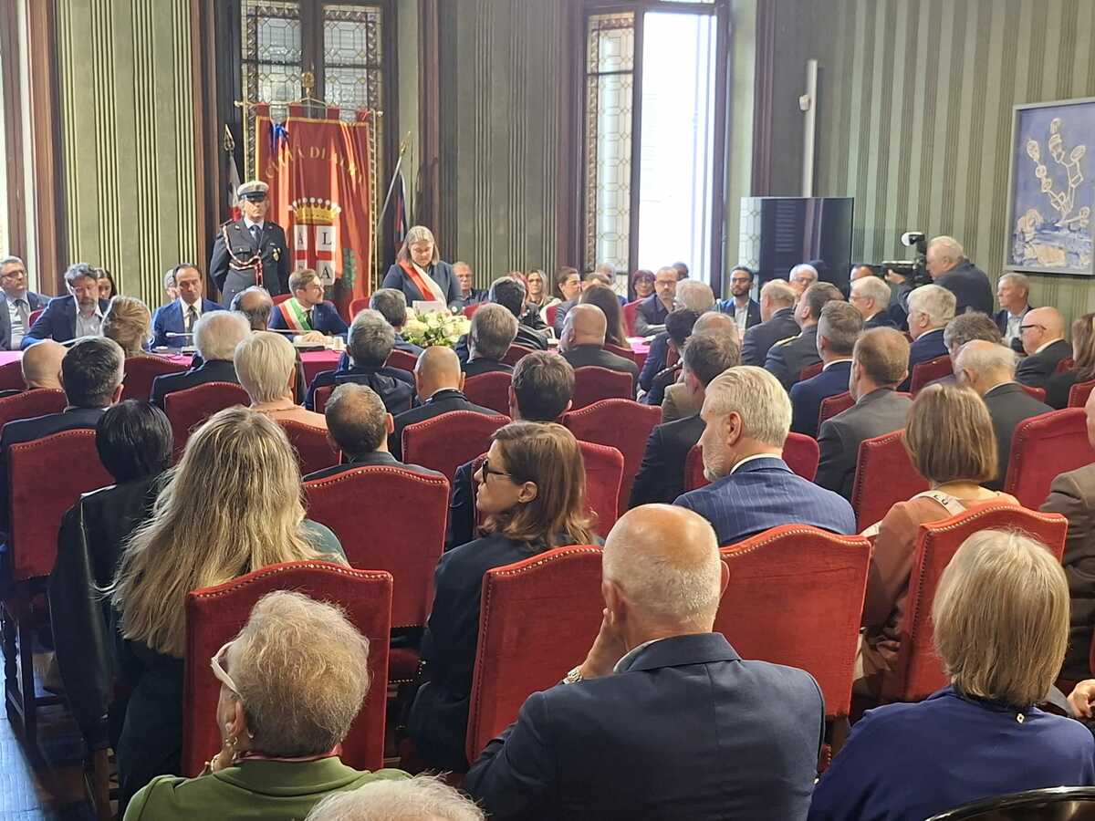 Ad aprire i lavori è la presidente del Consiglio comunale Elena Di Liddo, che sceglie un tono misurato, senza retorica, ringraziando le autorità presenti e gli ex sindaci di Alba presenti e richiamando anche gli ex sindaci e i rappresentanti della comunità.