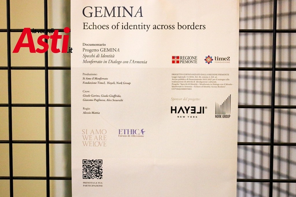 Asti guarda oltre i propri confini con “Gemina – Echoes of Identity Across Borders”, il documentario che intreccia Monferrato e Armenia in un racconto di identità, memoria, tradizioni e cultura del vino. Il progetto è stato presentato ieri mattina nella sala Gianni Basso del Teatro Alfieri e approderà in anteprima internazionale il 21 aprile al Cinema Anteo di Milano, nell’ambito della Design Week.