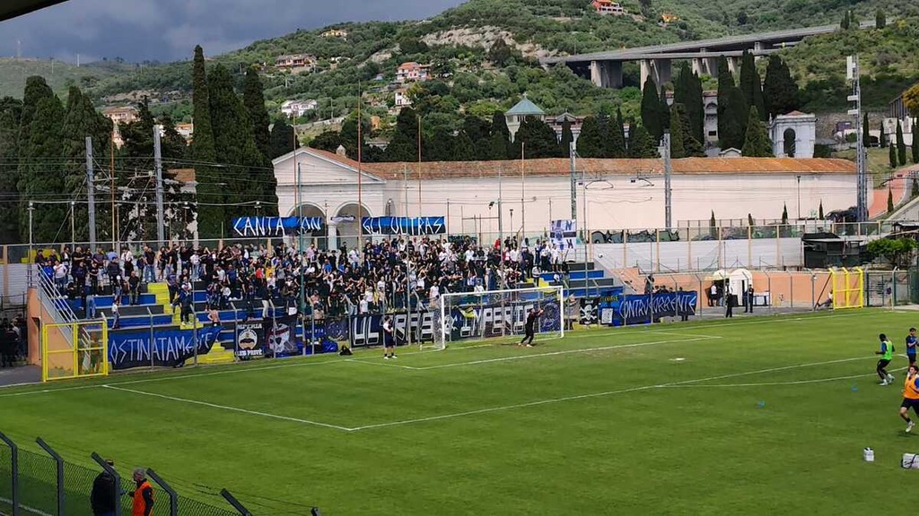 Lo stadio Ciccione è gremito in attesa nell'inizio del derby Imperia-Sanremese.