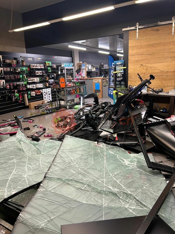 A raccontare quanto accaduto è Giorgio Borge, uno dei soci di Cicli Mattio: “I ladri sono entrati in retromarcia prima nell’officina, facendo partire subito l’allarme. Lì hanno trovato poco, solo due biciclette di clienti, e allora si sono spostati sull’altro ingresso.