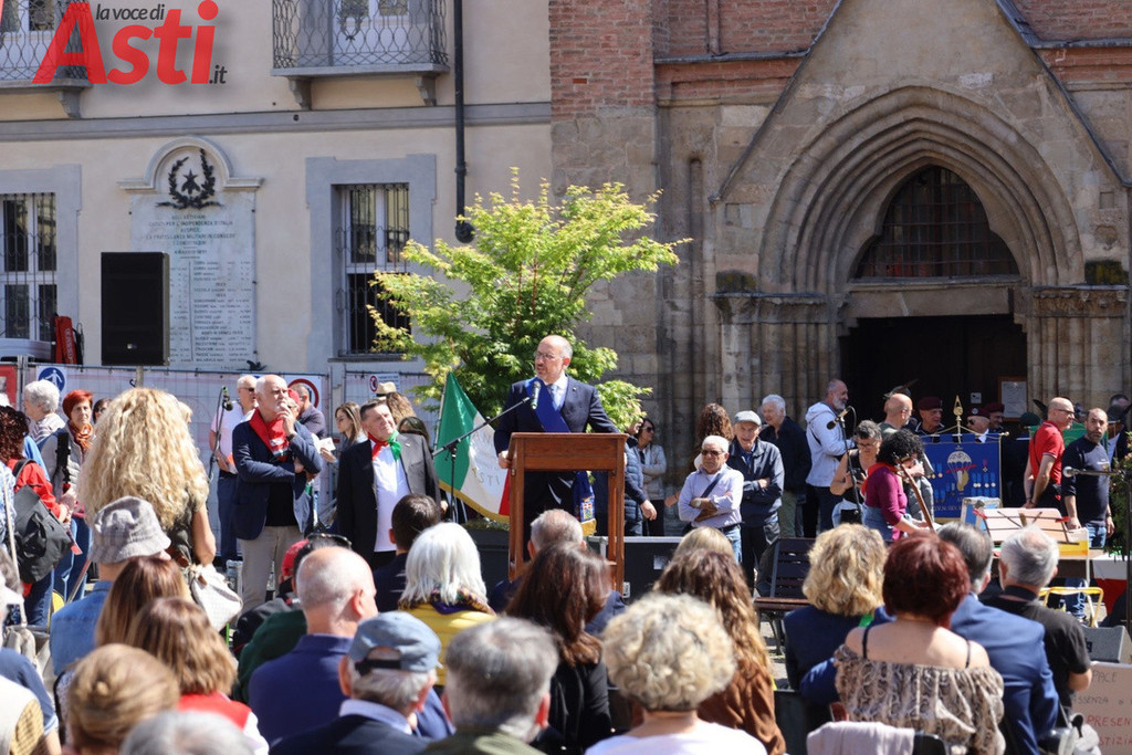Rasero ha poi annunciato una novità di grande rilievo per la città: Asti ha presentato un dossier di candidatura per la medaglia d'oro al valore civile, che si affiancherebbe a quella militare già ottenuta. Un riconoscimento che, ha spiegato, racconta il contributo di chi in città rese possibile la lotta sulle colline: "Preziosa la collaborazione di quelle tante donne che, in bicicletta o nascondendo messaggi nella fodera del cappotto, mettevano in contatto i battaglioni partigiani. Fondamentali gli scioperi nelle fabbriche. E i sacerdoti che seppero da che parte stare, chi aiutare e chi ospitare per sfuggire alle rappresaglie". Non solo: ha ricordato con orgoglio che già negli anni Venti, Asti era il luogo con la minore percentuale di iscritti al partito fascista nell'intera provincia di Alessandria.