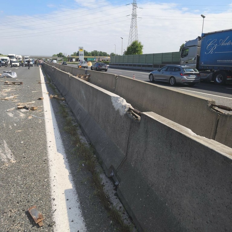 Brutto incidente nel pomeriggio di oggi, giovedì 30 aprile, fra La Loggia e Debouche', in direzione Milano, sulla tangenziale sud di Torino.